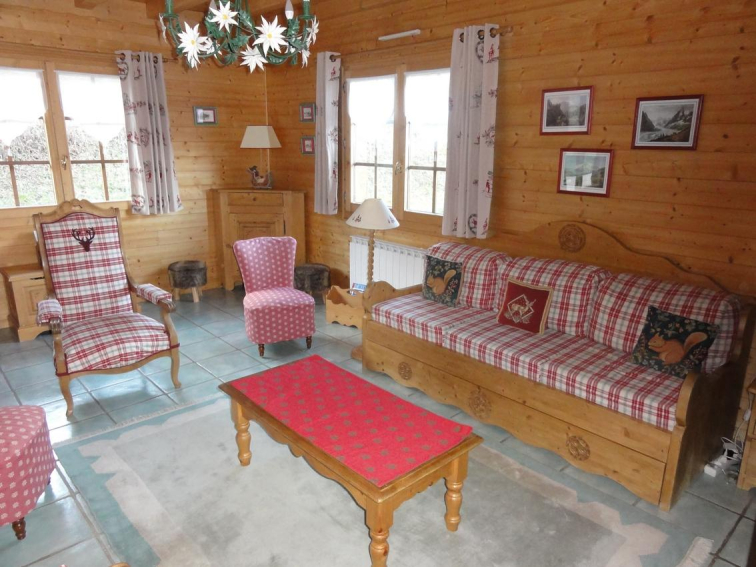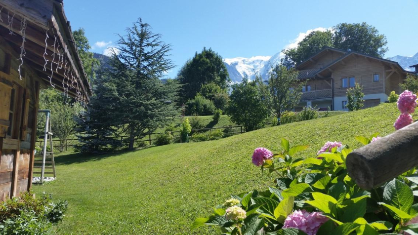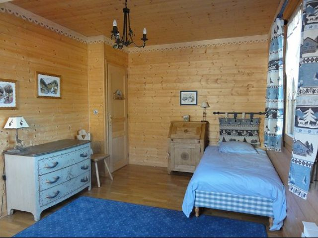 New chalet (2002), three floors, in a very quiet place, very beautiful view on Mont Blanc, very comfortable, nice decoration with savoyard furnitures, five bedrooms + four bathrooms.