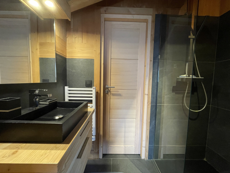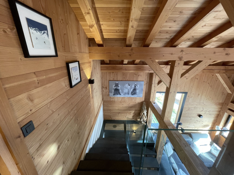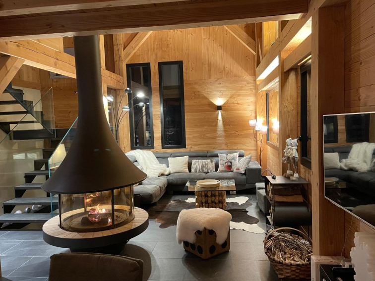 "Le Flocon" is a new architect designed chalet of about 150 m2. It is located on a sunny slope of Bettex near the ski slopes of Saint Gervais - Megève (1,9 km). It is located in a quiet area and is served by a municipal road cleared of snow by the town hall. It has a panoramic view on the Mont Blanc, the Aiguille du Midi, the Dômes de Miage and the Mont Joly. Built with noble materials and contemporary decoration, it has top-of-the-range services (2 island baths, 2 Italian showers, 3 independent toilets, a magnificent central fireplace, a functional kitchen with quality equipment and appliances, coordinated furniture and professional bedding, an outdoor spa, ...). It is classified as a 4* furnished holiday home. Everyone will find their place in this warm cocoon because the spacious chalet for 8 people has a lot of warm wood with its exposed solid wood frame and its interior and exterior cladding.