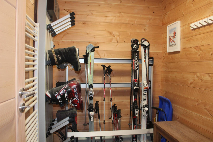 - ski room with ski rack, 10 pairs of shoes dryer and locker,