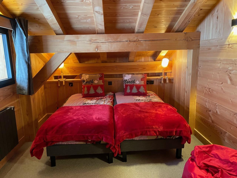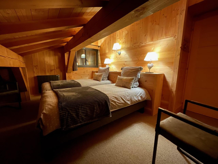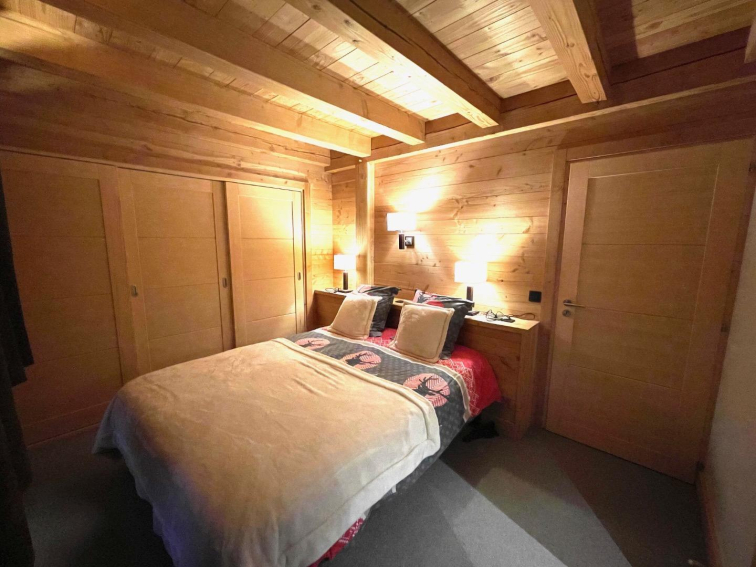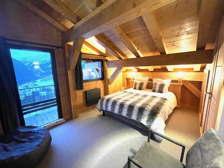 - a bedroom with a double bed in 160 giving access to a private balcony with panoramic view on the Mont Blanc,