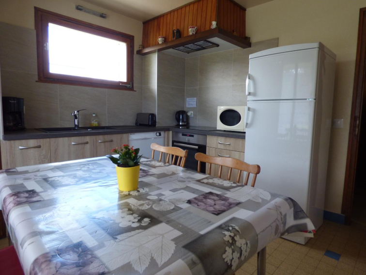 It is composed of an integrated kitchen with all the necessary equipment, a living room / bedroom (1 bed of 90x190, 1 sofa offering a bed of 130cm, TV), a bedroom ( 1 bed of 90x190 + 1 baby bed on request), a bathroom with walk-in shower, a separate toilet.
