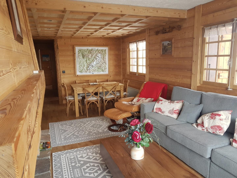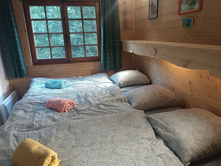 At the foot of the slopes and near a small grocery store (Sherpa) we can accommodate five people: A room with a double bed + A room with three beds (2 bunk beds and a single bed) A bathroom, a kitchen, a living room and a dining room with fireplace. French windows opening onto a balcony (20 meters) with a view of the Fiz chain and Mont Blanc. Linen is provided Garage and parking, ski room and cellar