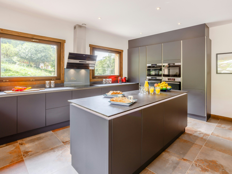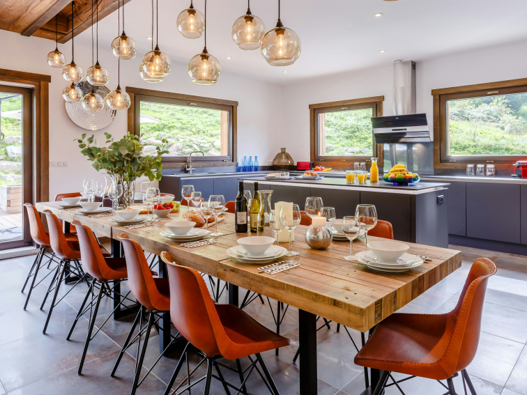 There's no shortage of space at the chalet. The huge living room is bathed in light thanks to the bay windows opening onto the terrace. Enjoy the comfort of the large sofas as you gather with family and friends. We love the modern, elegant kitchen and its many amenities. The laundry room is also very practical.