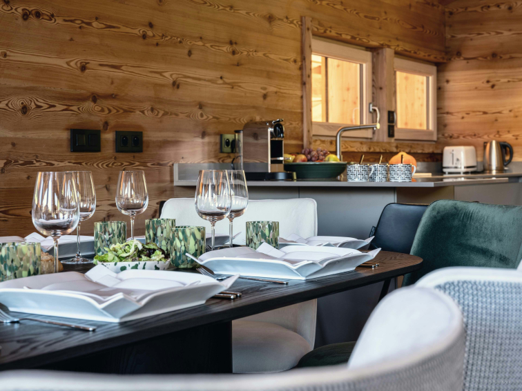 Chalet Ellambra enjoys a pleasant location at the end of a quiet residential street, less than 10 minutes' drive from the center of Combloux. It has five bedrooms and five bathrooms on three levels, for a total capacity of 12 holidaymakers (including 11 adults).