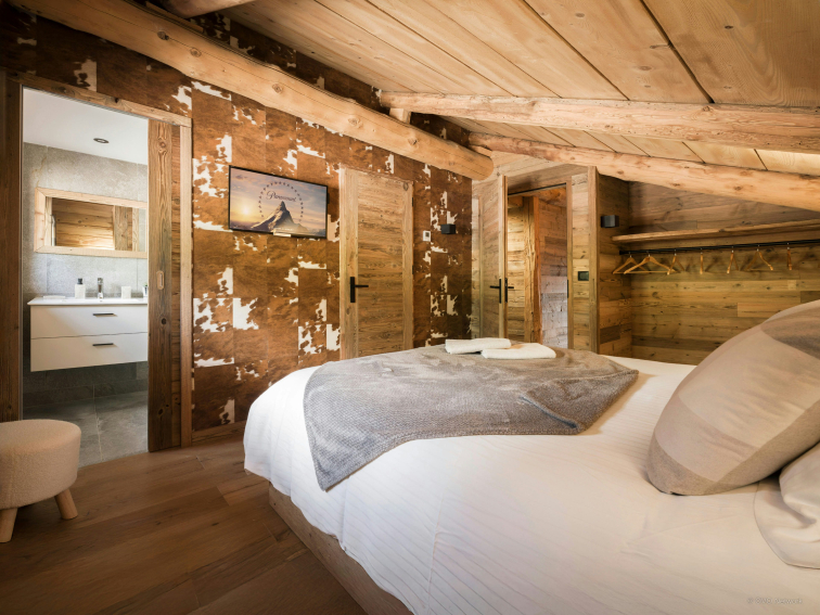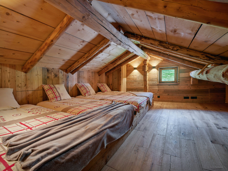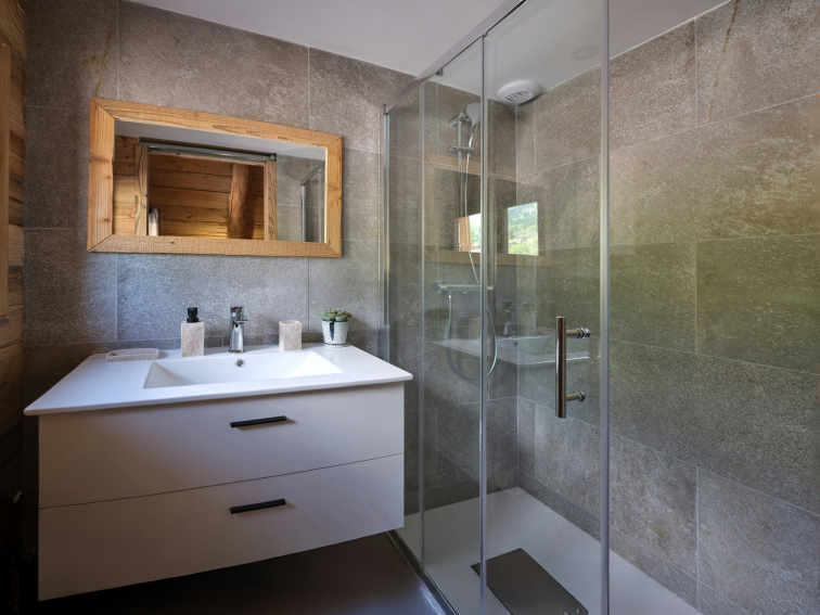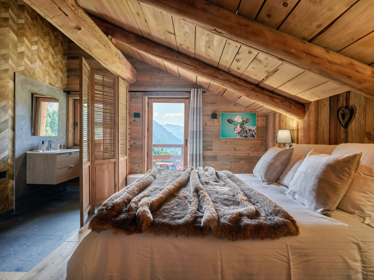 Designed to comfortably accommodate up to 10 people, La Ferme de la Caillère blends authenticity and modern comfort in the setting of a renovated farmhouse. The apartment, which has the atmosphere of a real chalet on one floor and a mezzanine, has four bedrooms and four bathrooms, three of which are en suite.