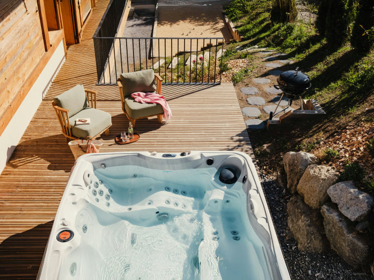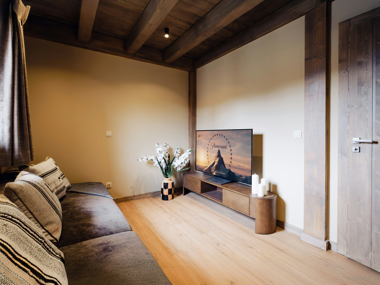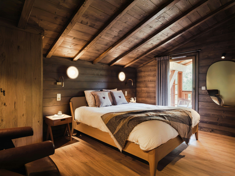 The chalet is beautifully decorated, with top-of-the-range amenities and large bay windows that bathe the living area in natural light. This includes a television and a fireplace, for warming up on long winter evenings.