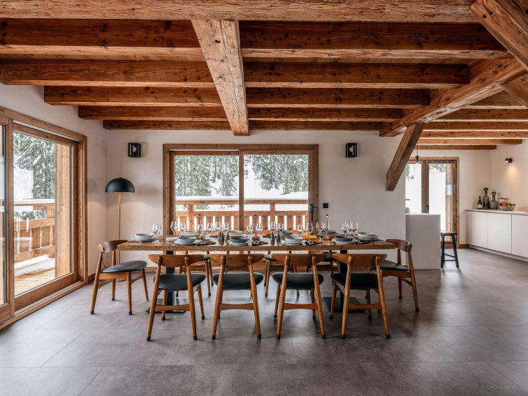 Recently built on the edge of the forest, Chalet Amethyste welcomes up to ten guests in a perfect balance of natural surroundings and modern comfort. Although it's surrounded by nature, it's easily accessible without a car, thanks to its proximity to the gondola that takes you to both the ski slopes and the Saint-Gervais train station.