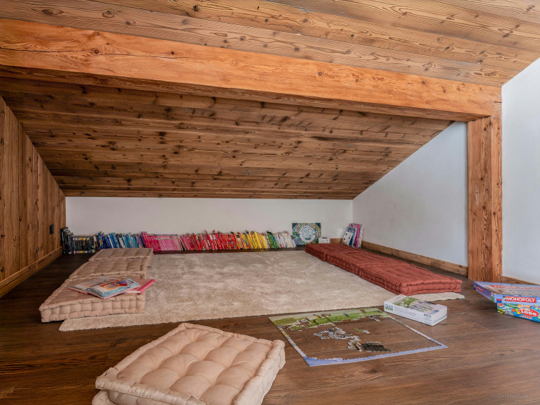 We were impressed by the comfort of the five bedrooms, each with its own en-suite shower room. The master suite on the upper level, with its dressing room, full bathroom and private balcony, offers parents a bubble of comfort, not far from a room with two single beds that can be used as a children's bedroom. Children will appreciate the space dedicated to them, with games, books and desks.