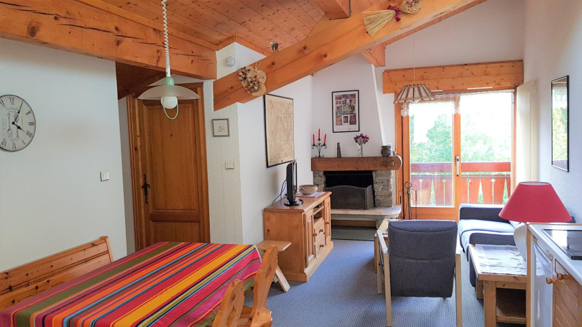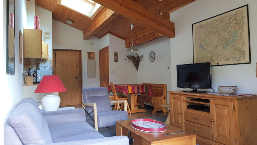Apartment for 4 people on the 1st floor of a collective chalet located in a rural setting on the slopes of Mont d'Arbois. At 200m from the shuttles, 1.5 Km from the town centre, the ski lifts and the golf course.