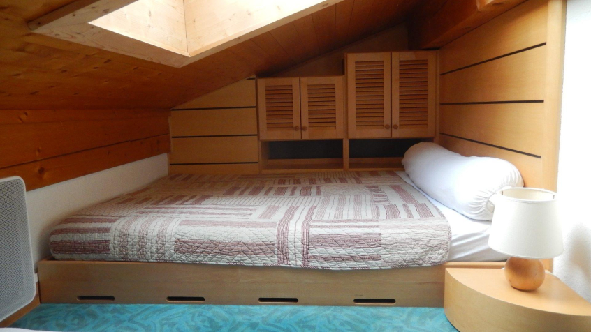 - A sleeping area (under 1.80) with a double bed and a single bed