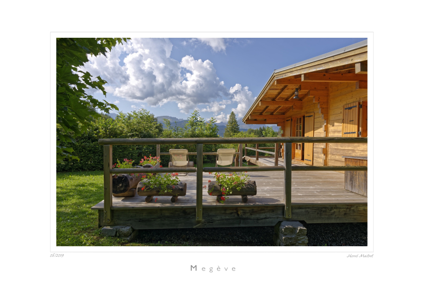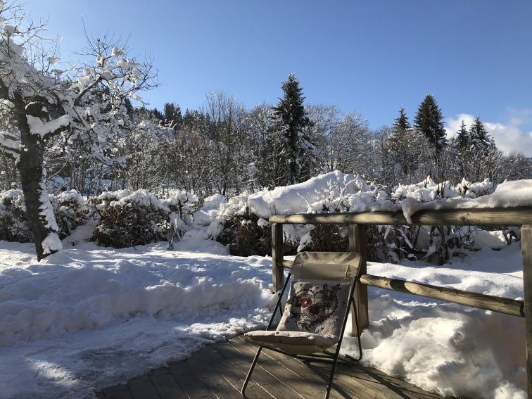 A l’arrière du chalet vue sur le Mont Blanc et le massif du Mont d’Arbois.