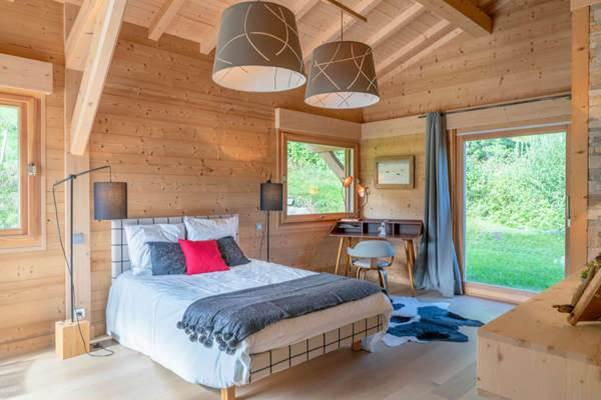 Chambre parents vue Mont Blanc et Aravis (27m2) + dressing + SDB en suite
