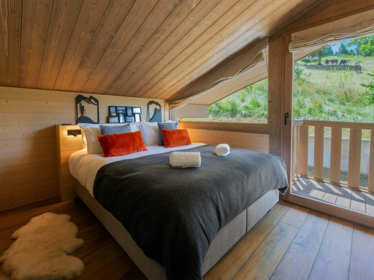 Elle compte six chambres à coucher, chacune équipée d’une salle d’eau attenante avec toilettes. Quatre chambres doubles bénéficient d’un accès direct à un balcon, où vous pourrez prendre une grande bouffée d’air matinale. Le chalet propose également une cinquième chambre double ainsi qu’un dortoir conçu pour deux enfants.