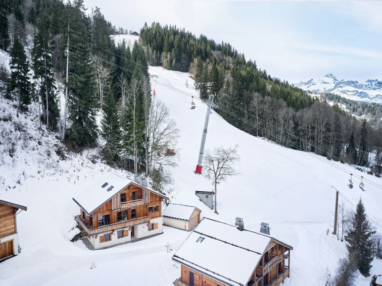 Bâti sur une piste de ski surplombant le paisible village de Saint-Nicolas-de-Véroce, c’est le refuge parfait pour une famille ou un groupe d’amis qui souhaite profiter pleinement des sports de glisse. Vous apprécierez néanmoins une atmosphère de sérénité en fin de journée. Il faut compter seulement 150 m jusqu'à la remontée mécanique qui relie Megève et Saint-Gervais. Toutefois, lorsque les conditions d’enneigement sont bonnes, vous pourrez quitter le chalet directement à skis.