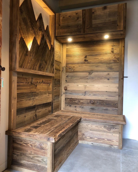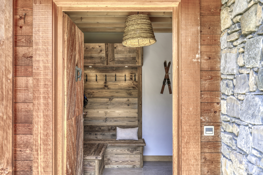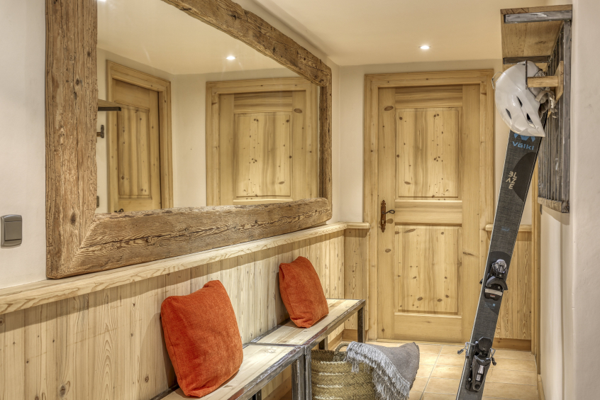 Un grand sas avec bancs et portes manteaux + espace ski-room + rangements.