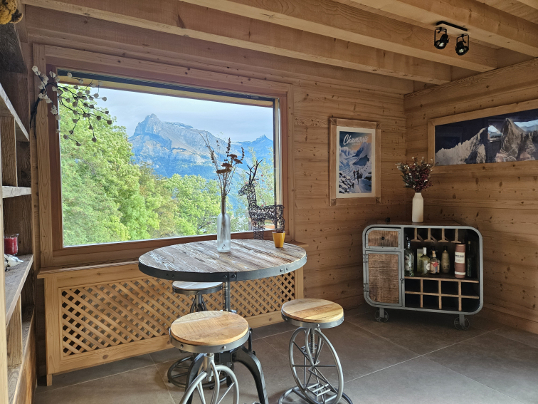 Le chalet est très chaleureux, meublé à neuf, lumineux avec une magnifique vue panoramique sur la chaine du Mont-Blanc sans vis à vis. Son positionnement permet également la vue sur la chaine des Fiz et des Aravis ce qui n'est pas commun à Combloux !