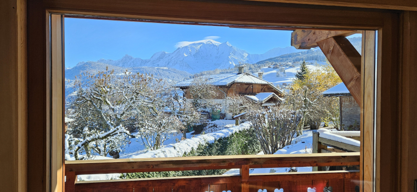 - Une cuisine équipée à neuf, vue Mont Blanc complète cet espace de vie.