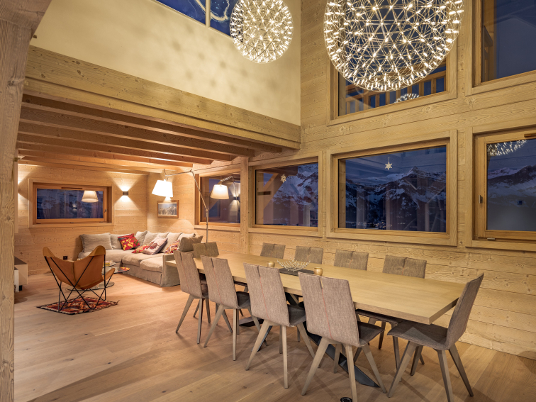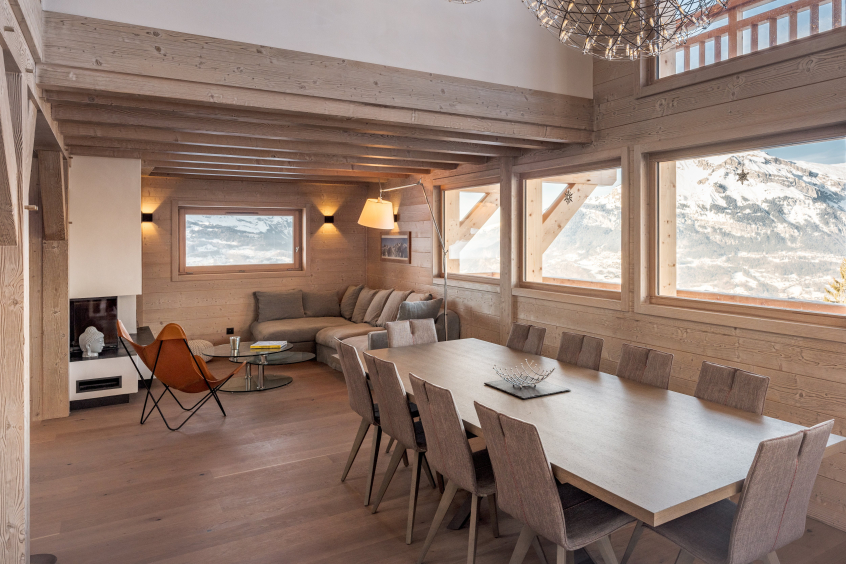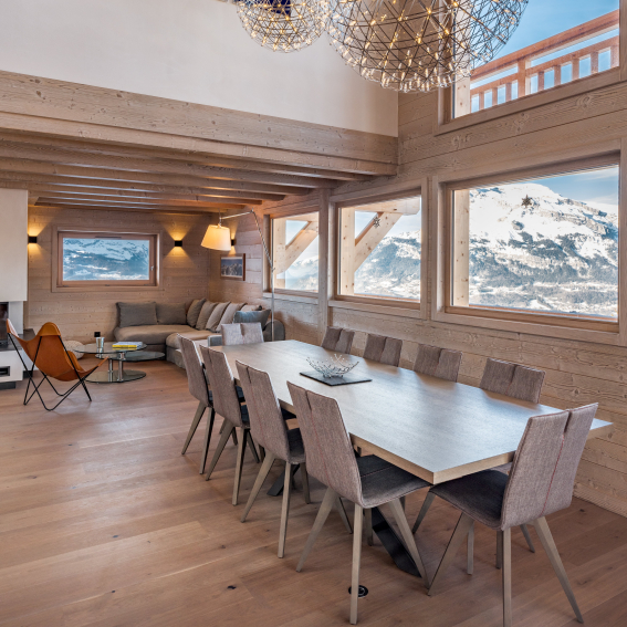 loue grand chalet familial avec terrasse, jacuzzi et vues sur le Mont Blanc , les Aravis et la chaine des Fiz.