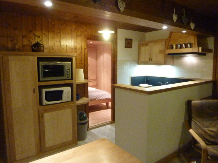 Appartement aménagé pour 2 personnes au rez-de-chaussée de notre chalet. Comprenant une chambre (lit 140), une salle d'eau (douche) et une pièce principale avec cuisine aménagée et salon : fauteuil et canapé. Terrasse, jardin, barbecue.