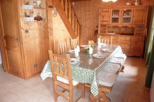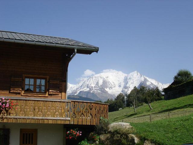 1er étage : cuisine ouverte sur grand séjour et salon, salle de bain, wc, balcon et terrasse panomarique exeptionnelle sur le mont-blanc, les aravis, et sur l'ensemble de la vallée.