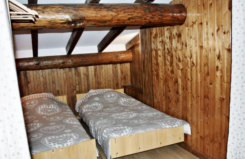 •Le premier espace est équipé de 2 lits de 0.90 fermé par un rideau.