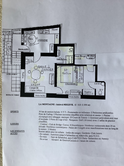 Dans une station ravissante et de renom "Megève",à louer appartement dans un chalet à 300 m du centre ville et à 250 m du télécabine du Chamois; en rez-de-jardin avec terrasse, exposition sud- ouest.Wifi gratuite à l'office de tourisme.